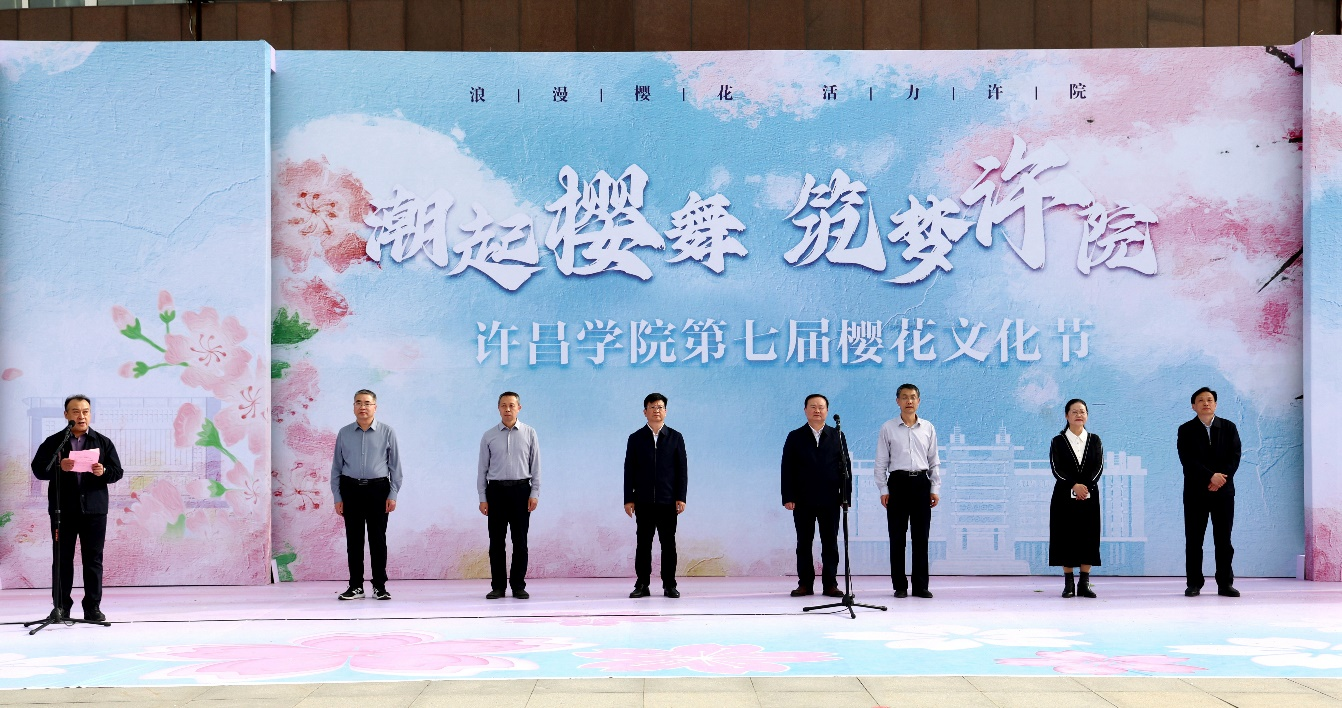 许昌学院党委书记郭涛宣布许昌学院第七届樱花文化节开幕。