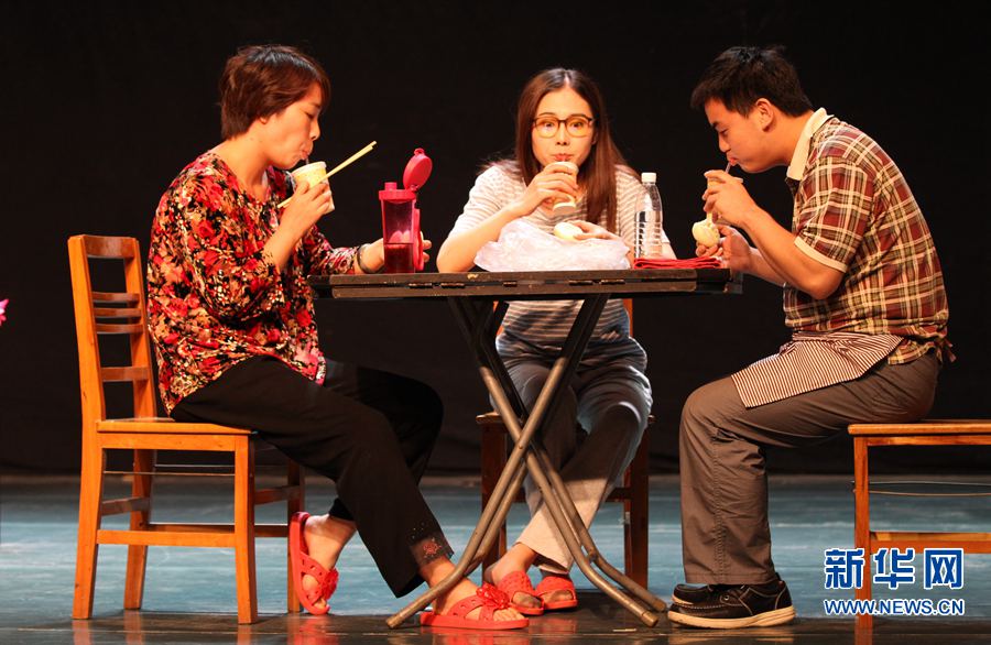《当归》是一部扎根生活的现实主义作品,它没有追求华而不实的情节,把所有问题集中在一个家庭的一天当中,剧本展现出外婆、父母和子女三代人之间杂而有序的关系,讲述祖孙三代人背井离乡而又故土难离,在“归与不归”之间难以取舍、魂牵梦绕的故事中,让观众产生了对现代都市生活的深刻感知与思考。据悉,8月16日,第14届“金刺猬”大学生戏剧节闭幕式暨颁奖典礼在北京圆满落幕,来自许昌学院的原创话剧《当归》夺得大戏节最高奖项“金刺猬”奖。新华网发(牛原 摄)