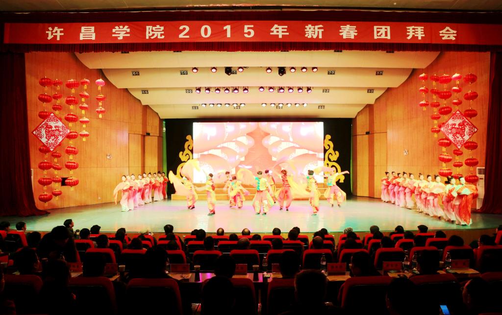 团拜会上,党委副书记马超宣布了“许昌学院2014年度十大新闻事件”。团拜会现场播放了各教学院部及学生会等单位向全校师生恭贺新春的视频短片,城乡规划与园林学院院长吴国玺和法政学院学生马帅分别代表师生发言,表达了他们对许昌学院师生的良好祝愿。随后,大家还观看了由音乐舞蹈学院、校工会、团委选送编排的精彩文艺节目。(摄影:宁智沛王豪 王军平)