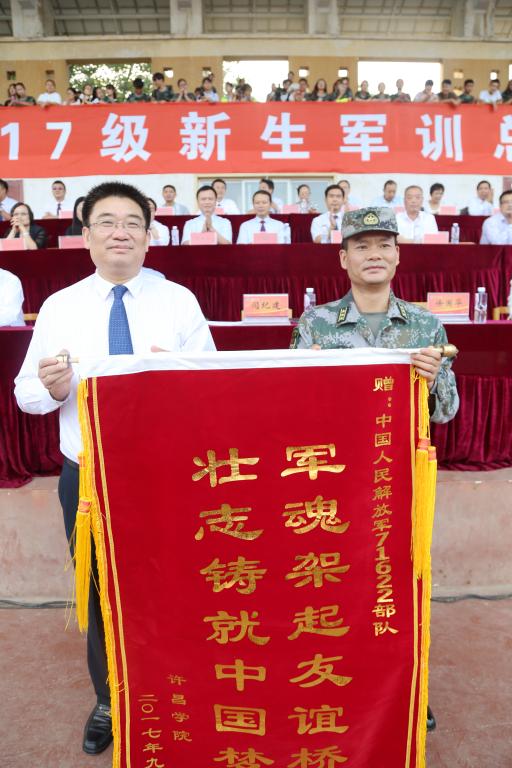 大会上,党委书记闫纪建为军训教官团赠送锦旗,出席大会的学校领导为军训教官赠送了纪念品。