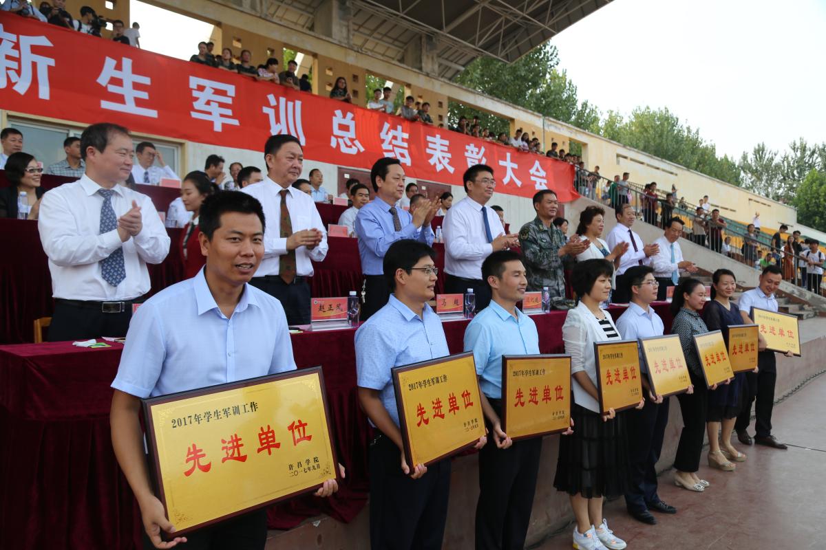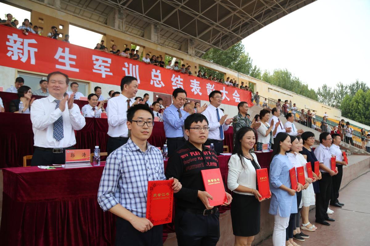 大会上,副院长郭涛宣布了军训工作先进单位、优秀连队和军训先进个人名单。文学与传媒学院、教育科学学院、数学与统计学院、电气(机电)工程学院、城乡规划与园林学院、音乐舞蹈学院、土木工程学院和新材料与能源学院等8个军训先进单位、10个军训优秀连队和2017级学生李俊杰等200名军训先进个人受到表彰。出席大会的领导为获奖单位和个人颁奖。(图文:宁智沛 航拍图片由耿利川及其团队提供 学生记者:张宁 张涵 陈江纯;视频:网络电视台)