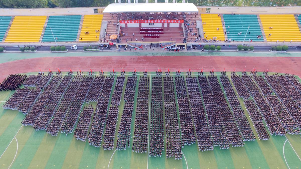 9月20日,我校在学校羽飞田径场举行2017级新生军训会操总结表彰大会。校领导闫纪建、马超、罗凤英、赵正风、崔斌、郭涛、杜志傲出席大会,承担我校新生军训活动的中国人民解放军71622部队副政委徐国华出席了大会并在检阅台就坐。学校有关部门和教学院部的领导参加大会并在主席台就座。全体承训教官和我校2017新生近7000人接受检阅。大会由党政办公室主任潘春彩主持。