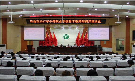 7月26日上午,许昌市2017年中等职业学校骨干教师培训在我校开班。我校副院长崔斌出席开班典礼,许昌市教育局副局长赵建鹏、我校继续教育学院书记赵新军,来自全市中等职业教育一线的160余名骨干教师参加了开班典礼。
