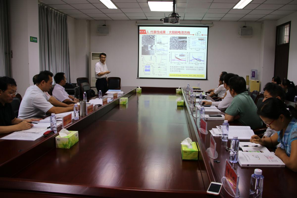 河南省微纳米能量储存与转换材料重点实验室主任、副院长郑直从实验室的基本概况、研究水平与创新能力、队伍建设与人才培养、科研条件与平台建设、开放交流与运行管理、存在问题、改进措施与发展目标等方面向评估组汇报了评估期内实验室的建设发展情况。