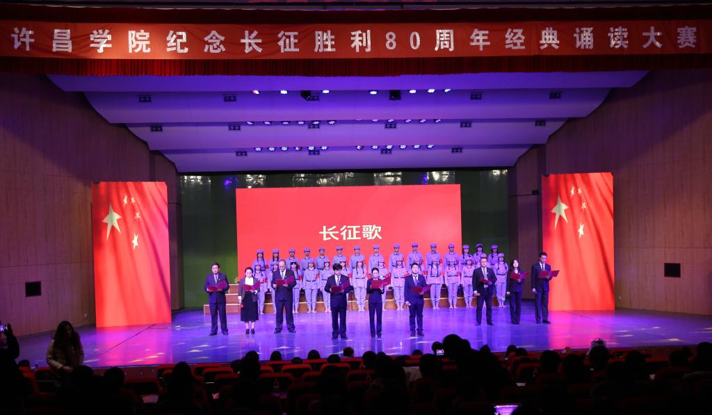 “红军不怕远征难,万水千山只等闲,五岭逶迤腾细浪,乌蒙磅礴走泥丸……” 11月25日下午,以“回望胜利足迹,奏响时代旋律”为主题的许昌学院纪念长征胜利80周年经典诵读大赛在音乐厅拉开帷幕。大赛由校工会、党委宣传部、团委共同举办,24个基层党委、党总支、直属党支部踊跃参与,校党委副书记马超、校工会主席杜志傲出席比赛现场,党委组织部、党委宣传部、院长办公室、工会、团委等部门负责同志,各基层党委、党总支、直属党支部书记以及400余名学生共同观看了比赛。