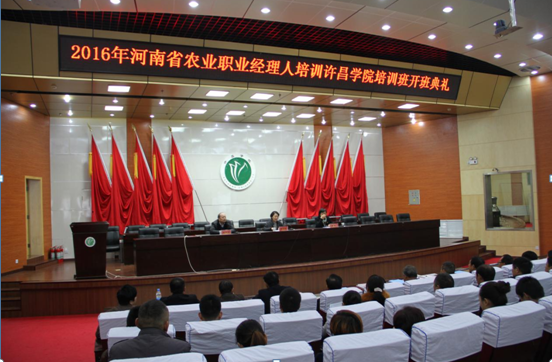 11月11日上午,2016年河南省农业职业经理人培训班开班典礼在我校学术报告厅举行,副院长黄怡俐出席开班仪式,许昌市农业局副局长黄艳、我校继续教育学院相关负责人和本次培训学员共同参加了开班典礼。典礼由继续教育学院党支部书记赵新军主持。