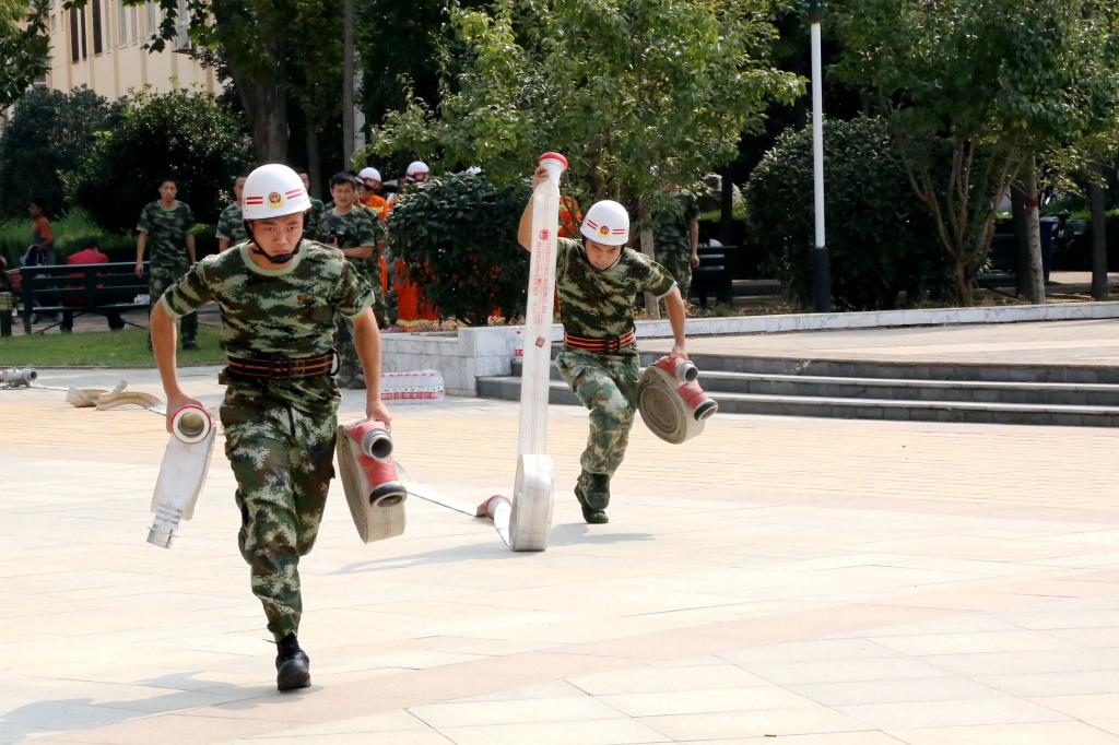 消防官兵进行消防技能展演