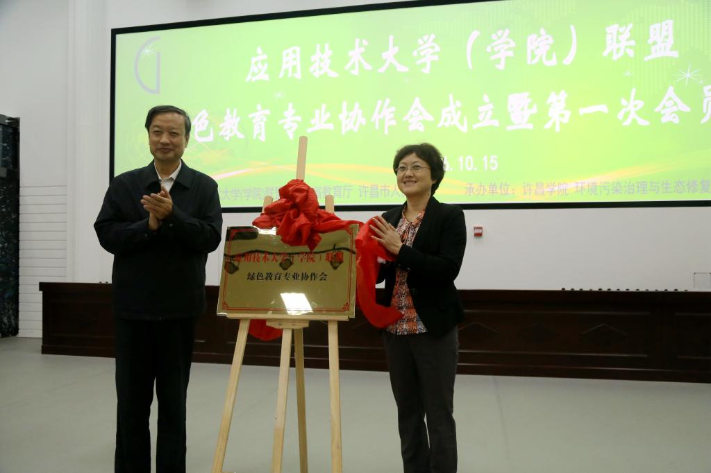 大会上,许昌学院副院长郑直作了绿色教育专业协作会筹备工作报告,应用技术大学(学院)联盟孟庆国理事长和绿色教育专业协作会理事长赵继红共同为协作会揭牌。