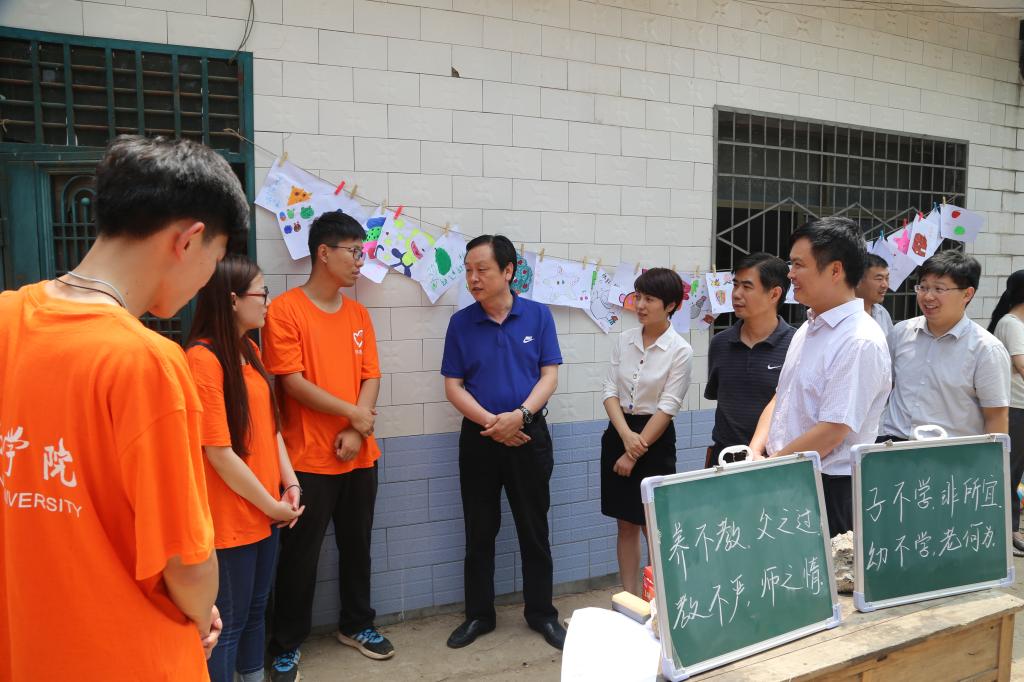 在禹州神垕镇,马超副书记一行看望慰问了我校“与钧同行”创新创业体验团的老师和队员们,并送去了方便面、火腿肠、矿泉水等慰问品。在详细了解实践队员在钧窑所从事的工作岗位和工作流程后,马超副书记叮嘱队员们要把握好深入学习的机会,多向企业领导和师傅们虚心求教,做好从理论到实践,从感性表象到理性认知的过度。希望同学们利用社会实践,能认识当前钧瓷艺术的发展趋势,把创意变成作品。在禹州鸠山镇张家庄,校领导一行看望了我校“爱心扶贫、益路同行”实践队队员并送去了慰问品,鼓励队员们充分发扬吃苦耐劳的精神,对乡村学生进行文化、政治等方面的教育和宣传,同时为当地村民带去一些力所能及的服务。