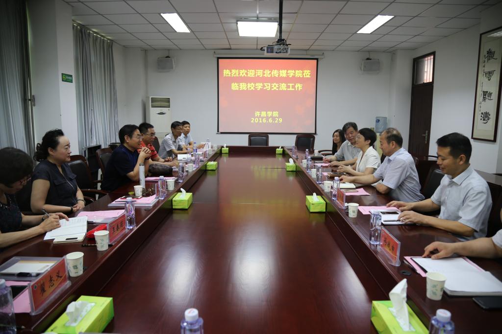 崔斌副院长代表学校致欢迎辞,并介绍了我校概况及信息化建设基本情况、近年来在信息化建设方面取得的新进展。赵继红院长对河北传媒学院董事长翟志海一行表示热烈欢迎,就信息化工作建议加强校校沟通,相互学习,共同提高。科技处处长张志立就我校数字化校园建设过程中的经验及存在的问题与来访客人进行了深入交谈。信息化管理中心主任冯战申就学校下一步的智慧校园建设等方面进行了交流。