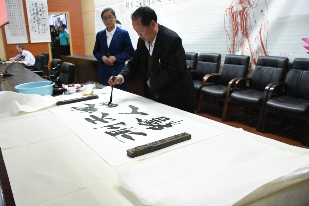 本次活动分为“听一首歌、看一段短片、听一段讲座、谈一番感悟、送一份吉祥”五个环节。在看过短片之后,许昌瑞贝卡污水净化公司生产副经理李自勋围绕着当代水污染的现状以及怎么治理污水为大家带来“水环境的污染与治理”的讲座,号召大家一同保护水资源。针对学生现场提问关于水污染治理的问题,李自勋经理耐心解释。许昌广播电视台文娱频道总监、中国艺术促进会理事杨松山老师呼吁大家珍惜爱护水资源,树立节水环保意思,发扬节水的生态道德,牢固树立生态道德教育。杨老师还特地为本次活动作诗一首,送给母校一份美好的祝福。著名书法家、现中国文化艺术协会会长常遂炎老师现场挥毫题字。