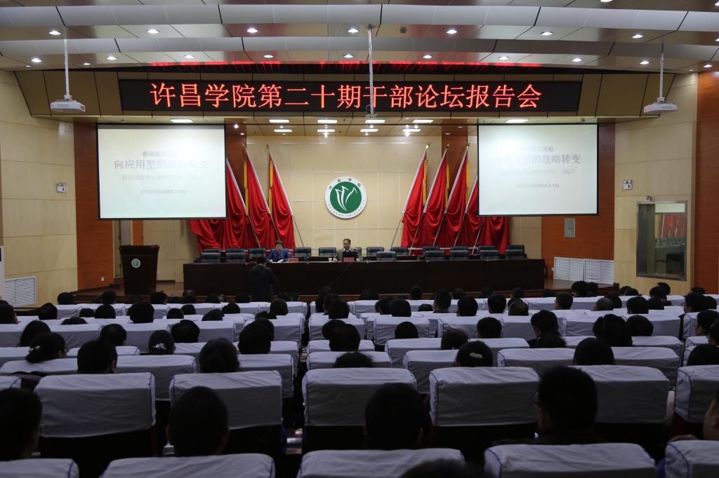 下午,我校在学术报告厅举行第二十期“干部论坛”报告会。教育部教育发展研究中心高教室主任马陆亭应邀作“推动地方高校向应用型的战略转变”主题报告,全校处级以上领导干部,各二级学院办公室主任、教学秘书、教研室主任,机关部门正科级干部300余人听取报告。会议由院长赵继红主持。