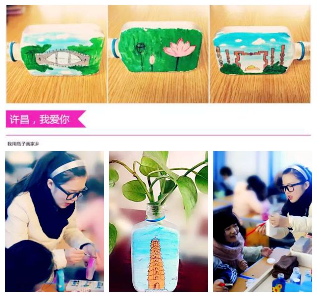 近日,一条“我用瓶子画家乡”的微信风靡朋友圈,不少许昌当地的家长晒出孩子的特别画作,这些画没有画在纸上,而是画在精致的瓶子上。荷花、灞陵桥、文峰塔、智慧门、北海公园等许昌景物“跃然瓶上”,网友纷纷点赞。