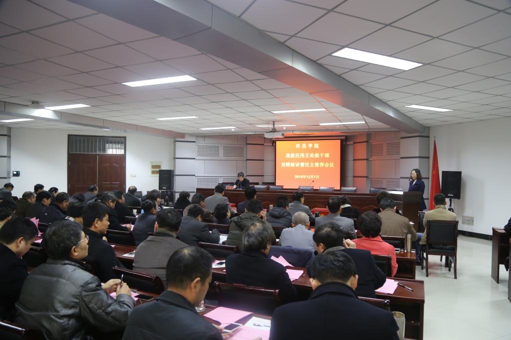 12月7日,我校在办公楼第三会议室召开选拔任用正处级干部竞聘演讲暨民主推荐会议。全体校领导、纪委委员及干部教师代表共100余人参加推荐会并担任评委。会议由党委组织部部长谭水木主持。