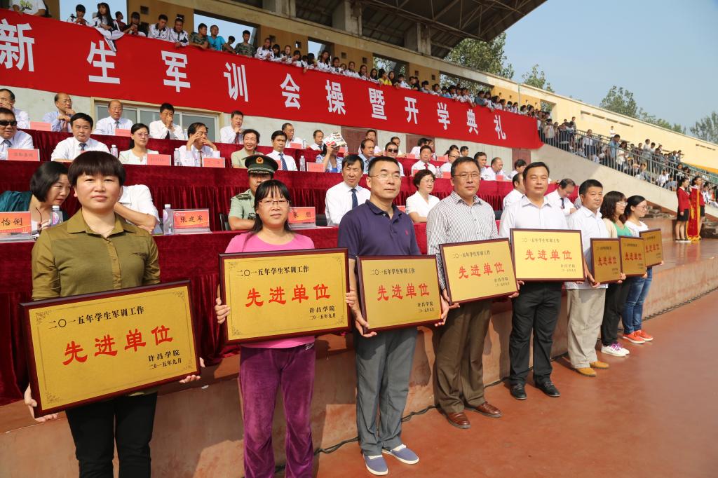 9月25日上午,我校在羽飞田径场隆重举行许昌学院2015级新生军训会操暨开学典礼。校领导赵继红、马超、张建军、崔斌、黄怡俐、郭涛、罗凤英、杜志傲,中国人民解放军某部营长张鹏等出席仪式。学校各院(部)、各机关部门负责人在主席台就座。全校各院(部)主管学生工作的领导、2015级的辅导员、班主任、校友代表和全体新生6000多人参加会操活动。仪式由院长办公室主任陈遂德主持。