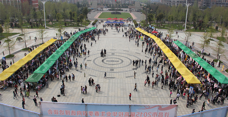 4月11日上午,由我校与许昌市人力资源和社会保障局联合举办的“许昌市2015届高校毕业生春季双向选择洽谈会”在我校弘毅广场正式举行。