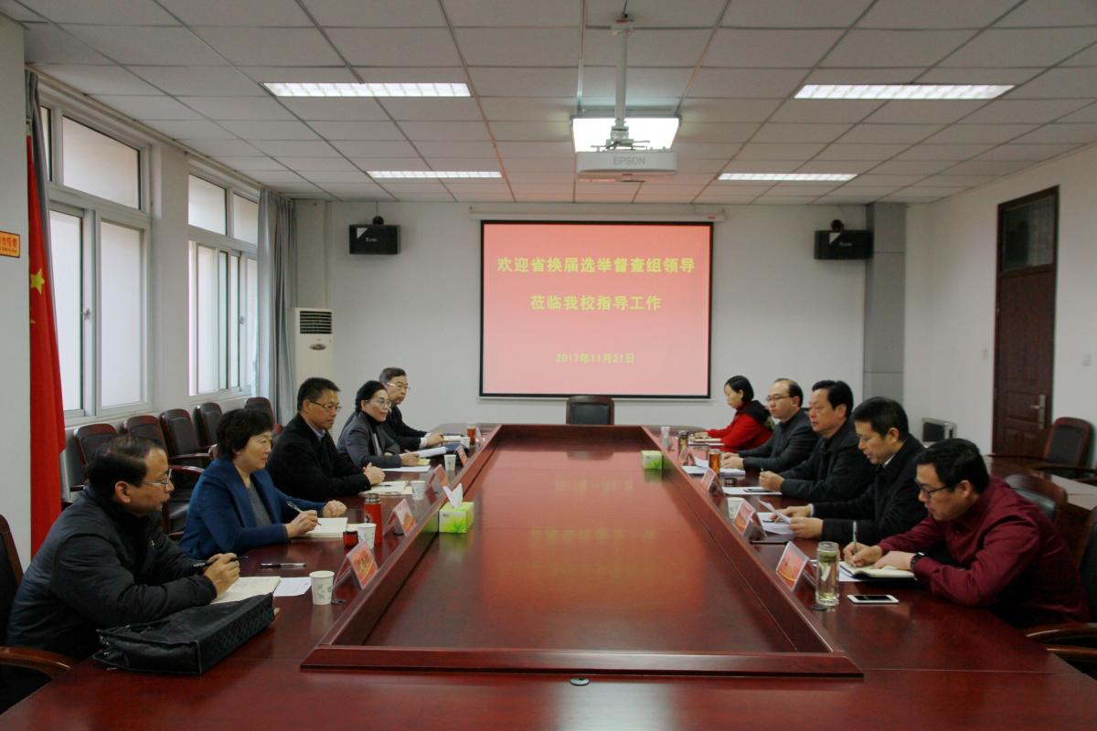 11月21日上午,省换届风气巡回督查组来到我校,对我校推荐提名河南省第十三届人民代表大会代表工作进行督促、检查和指导。工作座谈在学校办公楼第四会议室举行,督查组组长、省纪委驻河南日报报业集团纪检组组长朱永飞,督查组成员省委组织部正处级巡视专员丁霞、省人大常委会内司工委司法监督处调研员尚慧燕、省纪委驻省公安厅纪检组案件监察室副主任刘为民,市委组织部干部监督室主任周西钢参加会议,校党委副书记马超主持座谈会,党委组织部有关负责同志参加了会议。