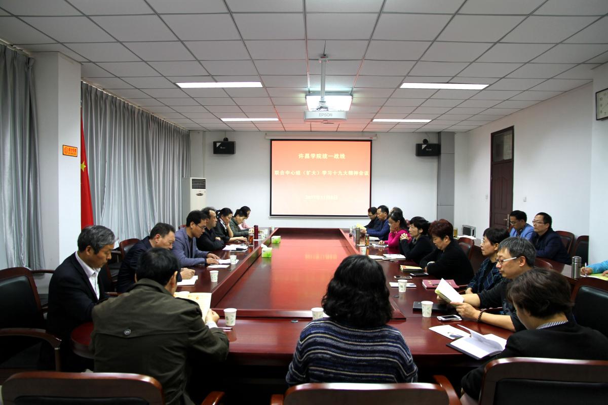 11月8日下午,我校在办公楼第四会议室召开统一战线联合中心组(扩大)会议,集中学习贯彻党的十九大精神。各民主党派主委、副主委或负责人,无党派人士代表,各级人大、政协常委(委员),校级党员领导干部联谊交友对象等参加会议。会议由党委统战部副部长黄高锋主持。