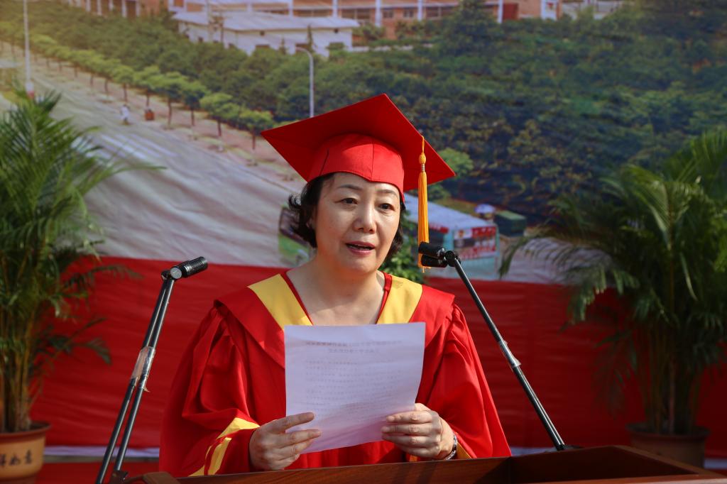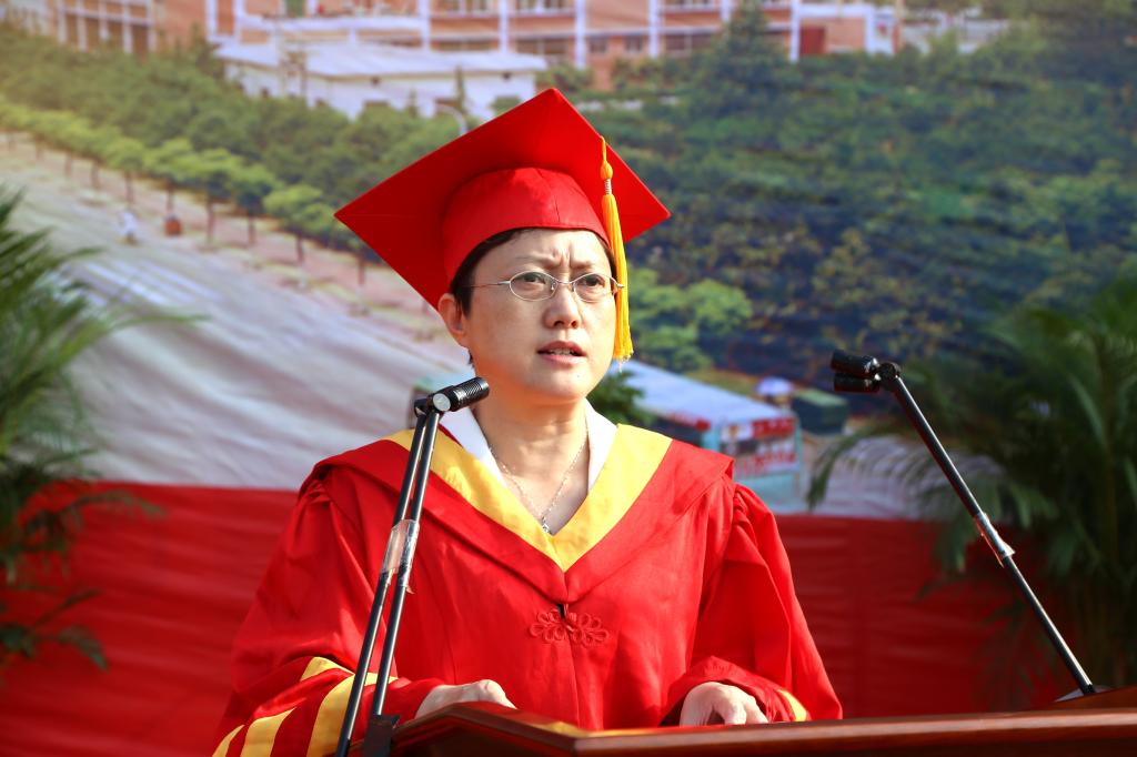 院长赵继红在典礼仪式上发表了热情洋溢的致辞。她说,2017届毕业生中有269名同学考取了硕士研究生,文学与传媒学院姚碧璇同学、信息工程学院曾仁杰同学分别被德国慕尼黑大学、英国利兹大学等世界顶尖名校录取。一些同学在自主创业的道路上已经小有成就,也有同学要到西部去、到基层去、到农村去,到祖国最需要的地方去建功立业,母校为大家的成长和进取感到高兴和骄傲。