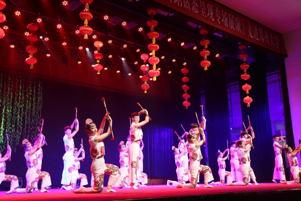 演出中,悦耳的霸王鞭、俏皮的颠花挑、豪气的大碗酒、喜庆的扭秧歌等极富中原民间乡味的舞姿让在场师生大饱眼福。模拟农民春耕场景,寄托人们“人强牛壮,丰收在望”的《打春牛》在表现农民兄弟质朴的品格,勤劳的本色的同时,也体现了他们对于生活的热爱;以河南著名民歌《编花篮》为蓝本创作的舞蹈《摘棉花》表现了一群妙龄少女活泼欢乐的劳动场景,轻盈灵动的舞姿,别具匠心的服装道具让人过目不忘;压轴舞蹈《抬花轿》将国家级非物质文化遗产“高抬火轿”和河南秧歌融合在一起,展现了河南秧歌特有的“大脚踩,大手甩”的特征以及独有的执扇方式和脚下律动。