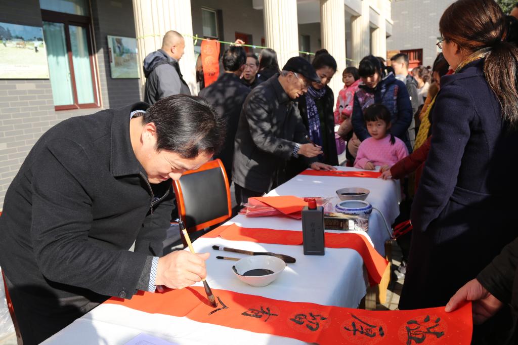 我校正校级调研员、中原农耕文化博物馆名誉馆长汪庆华教授,许昌市文广新局党委委员,我校优秀校友代表高宇平和河南省、许昌市书法家协会10多名书法家来到我校,为教职工义写春联、送上新春的祝福。