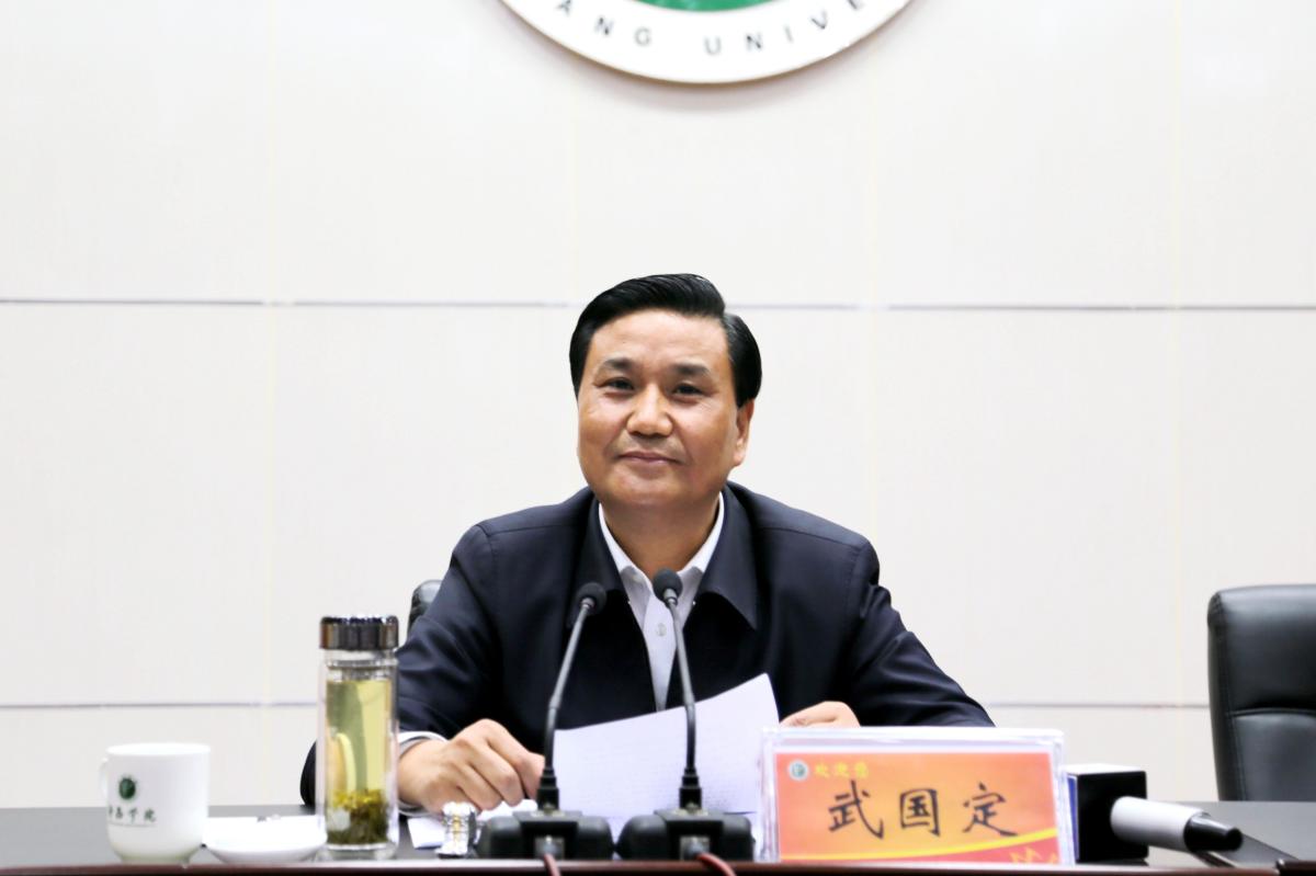 武国定强调,我们要始终坚持以党的十九大精神为指引,进一步武装头脑、指导实践。要学深悟透、入脑入心;要维护中央、紧跟核心。他希望许昌学院党委围绕特色鲜明的高水平应用型大学这一办学目标,团结带领院领导班子和全体师生,以党的十九大精神为指引,积极谋划学院发展的新思路、新举措;围绕贯彻落实人才强国、创新驱动、乡村振兴、健康中国等战略,以文化旅游、医疗健康、智能制造、智慧城市等为重点,积极调整优化学科布局,努力培养源源不断的优秀人才;围绕事关许昌经济社会发展的重大问题,在推动郑许融合发展、打好转型发展攻坚战、加快农业农村现代化等方面,积极开展有针对性的前瞻性研究,进行高水平的决策咨询服务,真正发挥好“智囊”和“参谋”作用;围绕持续深化校地合作,积极推进许昌发展研究院、大学科技园建设,加快科研技术成果转化应用,努力走出一条服务地方经济发展与促进学校自身发展良性互动的特色发展之路。