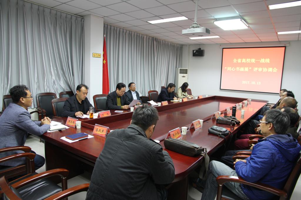 10月13日至14日,全省高校统一战线“同心书画展”大赛专家评审活动在我校举行。省委高校工委专职委员高治军,省委高校工委、省教育厅统战处处长张水潮莅临我校指导工作。校党委书记闫纪建、院长赵继红在贵宾室会见了各位领导,并就活动开展及其它相关工作进行了交流。