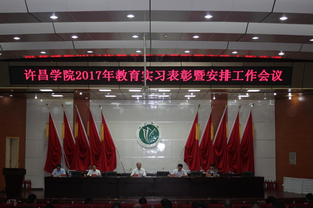 9月18日下午,我校与许昌市教育局在学术报告厅联合召开了2017年教育实习表彰暨安排工作会议。副院长崔斌出席会议,许昌市教育局副局长代廷安,许昌各市县区教体局相关负责人、各实习基地负责人、全体实习带队教师及部分教师教育专业毕业生等300余人参加会议。会议由我校教务处处长周颖杰主持。