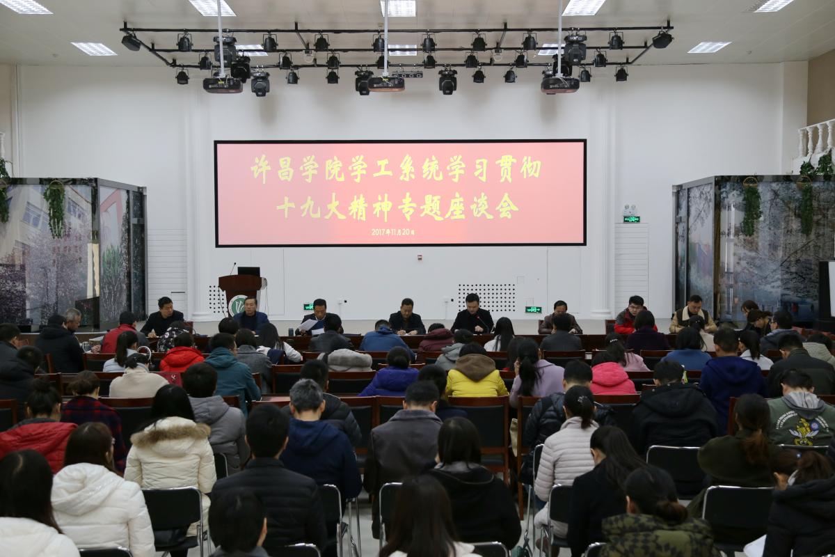 为进一步引导我校学生工作队伍深入学习贯彻党的十九大精神,积极推动在广大青年学生群体中开展学习贯彻党的十九大精神主题活动的开展,11月20日,我校在创新创业大楼一楼教师培训中心召开了学工系统学习贯彻落实十九大精神专题座谈会。校党委副书记孙海出席会议,学生工作部(处)全体人员、各学院主管学生工作负责人和全体专兼职辅导员130余人参加本次座谈会。会议由学生工作部部长张鹏辉主持。