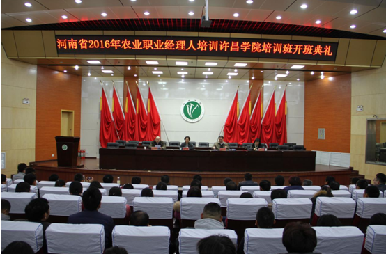 11月26日上午,河南省2016年农业职业经理人第二期培训班开班典礼在我校学术报告厅举行。副院长黄怡俐出席会议,省农业厅科教处副处长李洪岐、许昌市农业局副局长黄艳、我校继续教育学院相关负责人以及来自省内各地县区的100名农民学员参加了开班典礼。仪式由继续教育学院直属党支部书记赵新军主持。