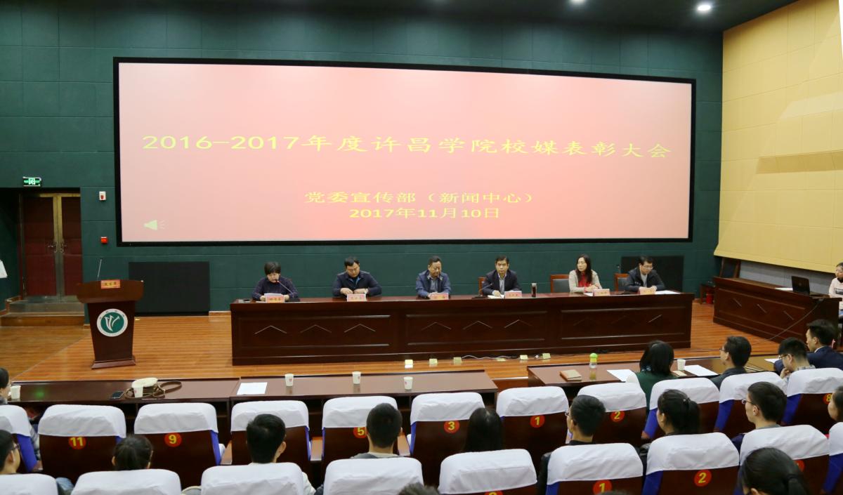 11月10日下午,我校2016-2017学年校媒表彰大会在创新创业学院二楼双创中心召开。党委副书记孙海,党委宣传部部长、新闻中心主任冯晓民,《河南日报》记者张建华出席会议,许昌学院报、大学生通讯社、广播电台、网络电视台、许院官微等校媒指导老师、学生200余人参加了会议。会议由党委宣传部副部长、新闻中心副主任钟伟平主持。