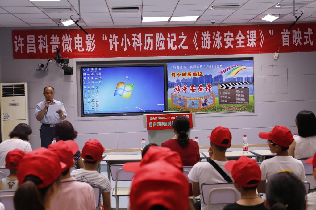7月9日,由许昌市科学技术协会、许昌学院公共实验中心联合拍摄的科普微电影“许小科历险记之游泳安全课”在我校西启智楼成功举办。许昌市科学技术协会副主席王丽霞、许昌市科技馆馆长邢景锋、许昌市科技馆科普部部长周海旺、我校公共实验中心主任李志业及部分市直中小学科技辅导老师和公开选拔的45名小科普志愿者参加了本次首映活动。
