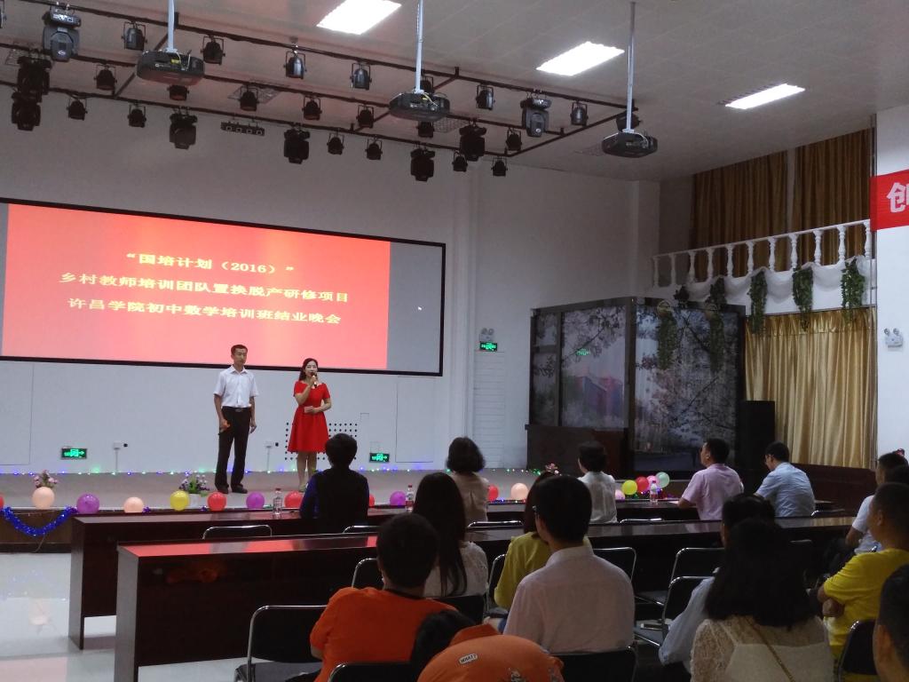 本次研修项目包括2016年下半年和2017年暑期培训阶段进行,分为集中研修、跟岗实践、返岗实践、总结提升等环节,重在提升乡村初中数学教师的课堂教学能力、基础培训能力、工作坊主持能力和教学科研能力等。在第二阶段集中研修培训结束时,我校专门组织结业晚会。副院长黄怡俐和继续教育学院、数学与统计学院及培训学员共同参加活动。黄怡俐副院长鼓励广大参训学员充分利用学习机会,提高业务素质和能力,更好地为乡村中学数学教育做出贡献。