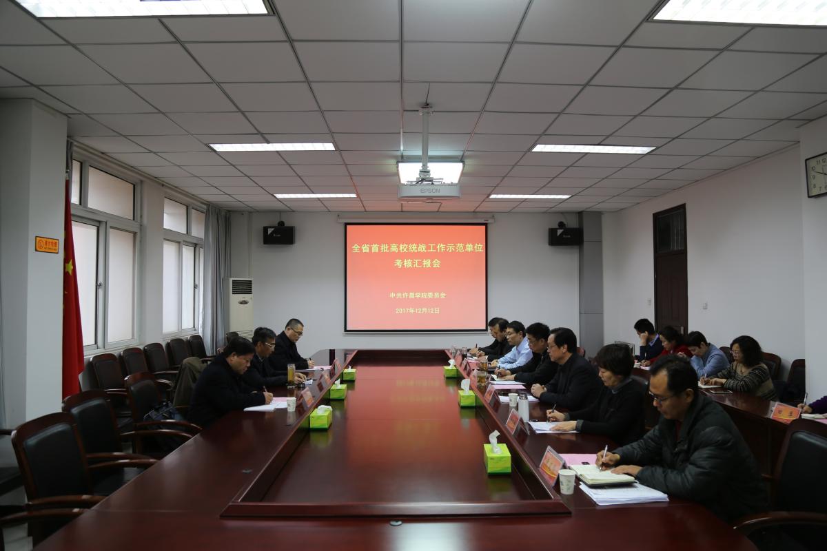 汇报会上,考核组组长梁晓夏书记首先就本次全省开展统战工作考核的背景、意义、程序和要求做了说明。我校党委书记闫纪建简要介绍了学校的基本情况,然后以“务实重做 开拓创新 大力推进统一战线工作”为题,进行专题汇报。汇报中,闫书记指出,许昌学院高度重视统战工作,认真学习贯彻党的十九大精神和中央、省委关于统一战线的一系列重大决策部署,务实重做,开拓创新,不断提升统战工作专业化、科学化水平,从而为学校转型发展、建设特色鲜明的高水平应用技术大学营造了良好的发展环境。一是高度重视,形成合力,着力构建大统战工作格局;二是健全机构,完善机制,确保统战工作保障有力;三是围绕大局,凝心聚力,充分发挥民主党派和无党派人士的作用;四是规范管理,注重创新,凝练打造统战工作特色;五是落实部署,扩大影响,积极承办全省和许昌市统战工作重大活动;六是一年来统战工作硕果累累,成效显著。闫书记希望以此次检查考核为契机,进一步推动我校统战工作科学发展,不断谱写学校统一战线事业新篇章。