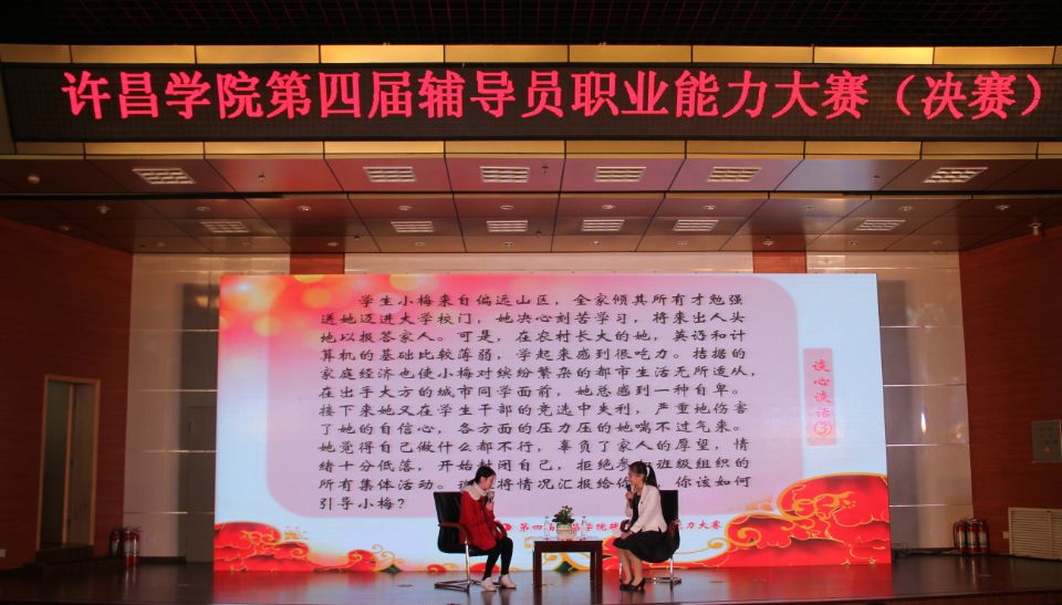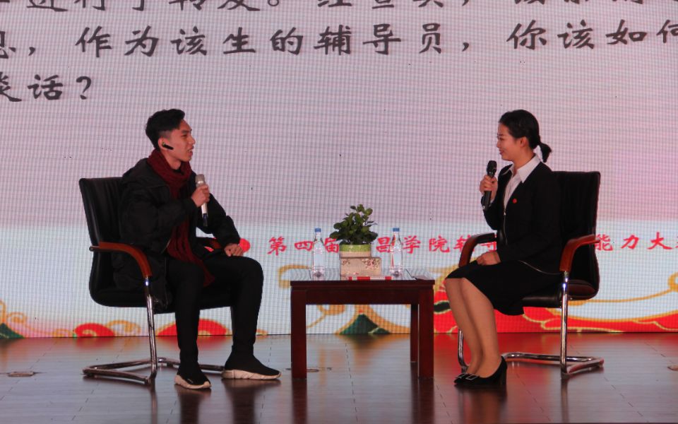 本次大赛严格按照省赛的赛制安排,分为初赛、复赛和决赛三个阶段。共设主题班会、基础知识与博文写作、案例分析、主题演讲和谈心谈话五个环节。大赛自11月上旬发布通知以来,得到了各教学院部的高度重视,共有来自22个学院的66名辅导员报名参赛,经过初赛和复赛的选拔,共有10名辅导员进入决赛。决赛分为谈心谈话和主题演讲共两个环节。谈心谈话环节,参赛辅导员围绕大学生创业、情感问题指导、人际关系处理、心理健康教育等热点难点问题,现场为学生解答困惑。在主题演讲环节,参赛选手围绕“平凡中努力、使命中担当”、“以德为魂,与爱同行”等主题进行了精彩的演讲。各参赛选手从容沉稳、应对自如,精彩的分析和出色的应变能力将比赛推向一个又一个高潮,赢得了观众们的阵阵掌声。心理咨询中心主任张松对比赛进行了精彩点评。
