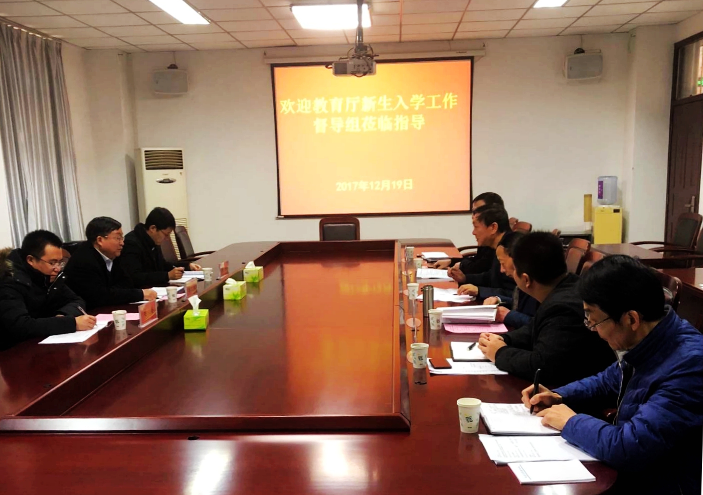 会上,赵正风副院长致欢迎辞,并简要介绍了我校近几年的发展情况。宋文献组长就此次检查督导的目的、意义和要求进行了详细说明。教务处处长周颖杰详细汇报了我校2017级新生入学资格复查、日常学籍学历管理及贯彻落实教育部41号令等工作的开展情况。,督导组成员并就贯彻执行教育部41号令、学生转专业、学位授予等热点议题与参会人员进行了深入座谈。会后督导组查阅了相关资料,并深入我校新生宿舍现场查验了考生信息张贴情况。