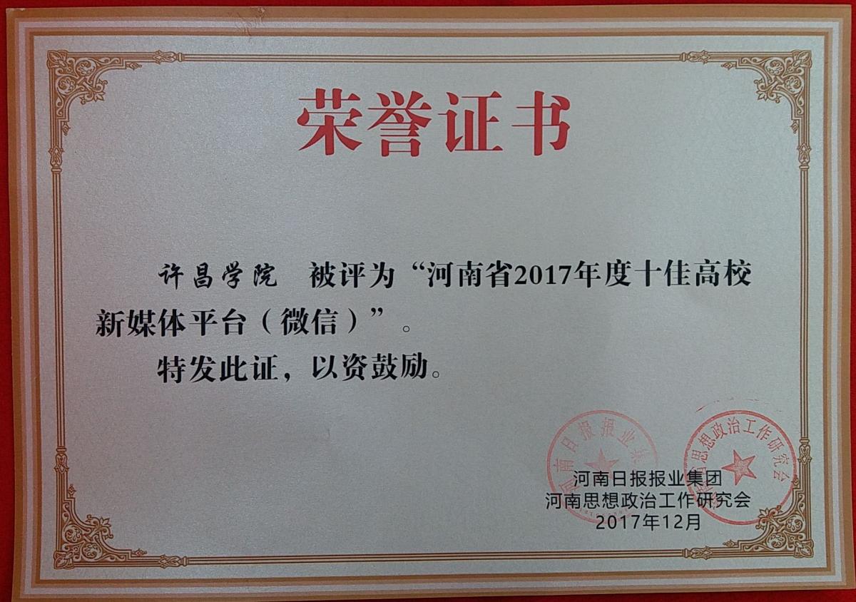 近日,由中共河南省委宣传部指导,河南日报报业集团与河南省思想政治工作研究会主办,大河报·大河客户端、中原高校新媒体联盟承办的“闪亮新时代——河南省第二届大学生新媒体原创作品大赛暨2017年度十佳高校新媒体平台评选”活动落下帷幕。我校官方微信荣获“河南省2017年度十佳高校新媒体平台”称号。