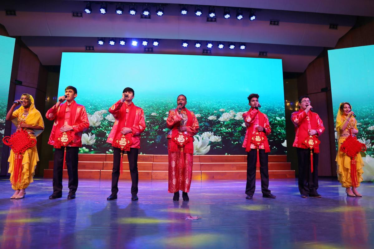 团拜会上,院长赵继红宣布了“许昌学院2017年度十大新闻事件”和“许昌学院2017年度十大入围新闻事件”。团拜会现场播放了党委宣传部、公共实验中心联合录制的“2017许昌学院月度汉字”视频,温情回顾了一年来许院发展铿锵坚定的足迹。团拜会还向全校师生送去了教学科研团队、留学生、创业团队、国外学子等不同群体的视频祝福。城乡规划与园林学院徐永新博士,法政学院学生、校学生会主席周康源分别代表师生发言,表达了他们对许昌学院师生的良好祝愿。随后,大家还观看了由党委宣传部、音乐舞蹈学院选送编排的精彩文艺节目。 (摄影: 宁智沛 袁旭阳)