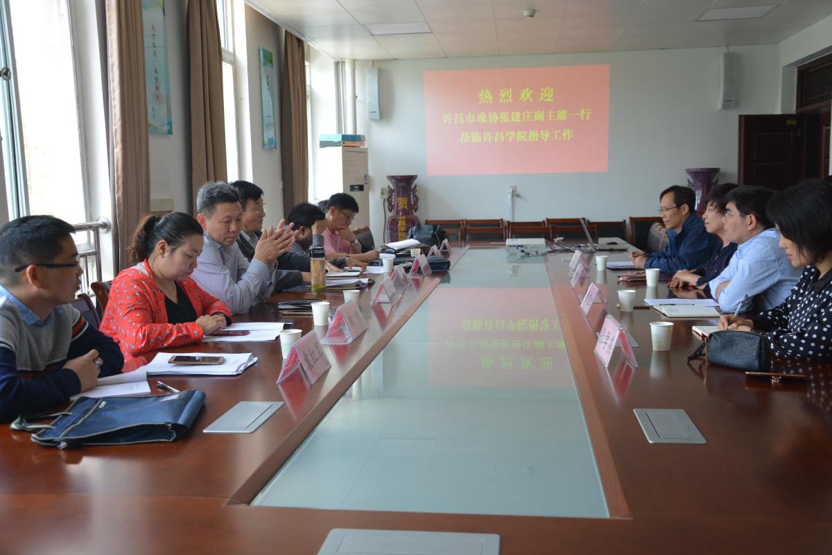 4月27日,许昌市政协副主席张建庄以及市工信委、市食品药品监督局等单位相关人员一行9人到我校调研交流,就我校药物研发平台建设及产学研情况进行调查走访。我校在化学化工学院三楼会议室召开座谈交流会,校纪委书记罗凤英出席会议,化学化工学院相关负责人、教师代表参加了座谈。