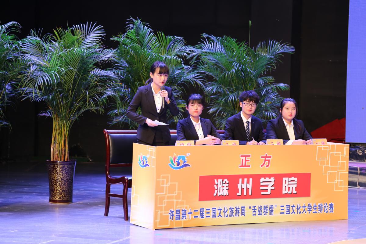 4月29日晚,由许昌市人民政府主办,许昌学院、许昌广播电视台承办的许昌第十二届三国文化旅游周“舌战群儒”大学生辩论赛在许昌电视台演播大厅圆满落幕。经过激烈角逐,最终滁州学院代表队获得冠军,信阳师范学院代表队屈居亚军,长江大学及许昌学院代表队并列季军。市人大常委会副主任艾祥涛、许昌学院党委副书记孙海,许昌广播电视台党委书记、台长李海彬等领导和许昌市民、学院师生等一同观看了此次辩论赛。