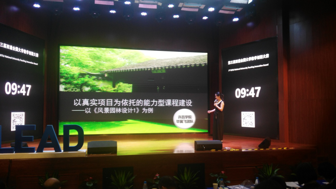本次教学创新大赛共收到来自75组共计140人的报名申请,经过资料初审、大众评选、专家函评等环节,来自重庆大学、吉林大学、四川大学、对外经贸大学、南京工业大学等高校的20个参赛个人和团队入围决赛,在决赛现场展示他们的教学创新实践。我校毕翼飞教师团队从课程背景、课程设计、课程实施、课程评价、课程效果五个方面对我校实施课程改革的《风景园林设计》进行了全面的介绍,最终该团队荣获西浦全国大学教学创新大赛三等奖。据了解,毕翼飞教师团队曾在我校首届应用型课程设计竞赛中荣获一等奖,是我校应用型课程改革过程中的涌现出来的典型案例。