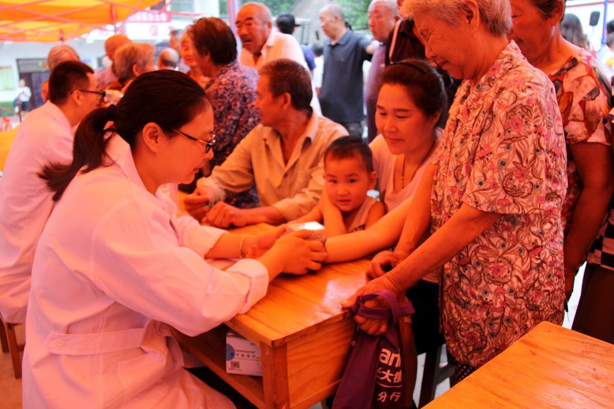 在村委会大院,来自我校医学院和校医院的教职工志愿者设置了内科、眼科、儿科、口腔科、妇科、护理、中医、保健与健康指导八个咨询台,现场免费为村民测量血压、血糖、提供心电图检查、发放了常用药品,耐心解答村民的咨询,细心诊断各类常见、多发疾病,指导群众规范用药,同时给予科学的治疗和保健建议,使每一位前来就诊咨询的村民享受到“家门口”的优质医疗服务。