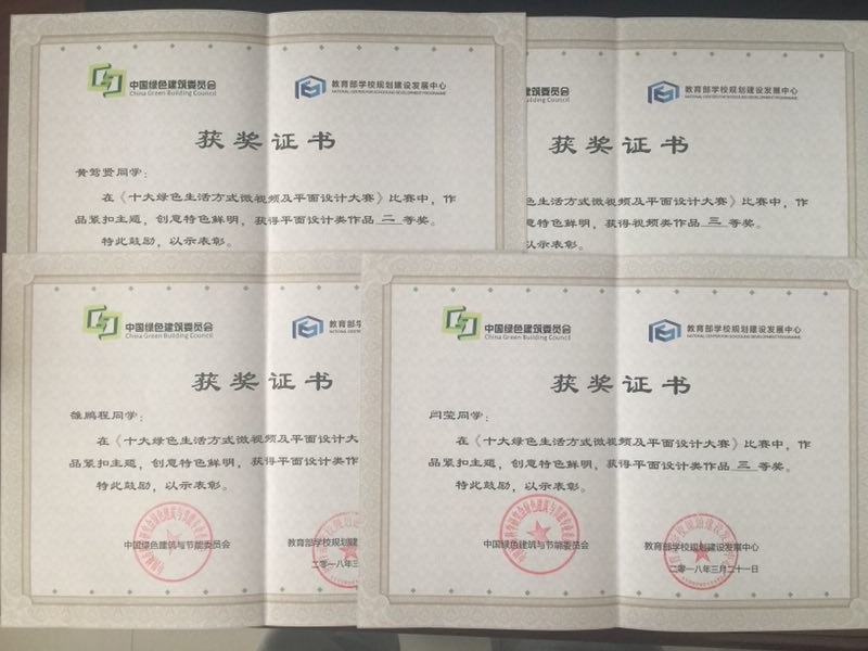 近日,由教育部学校规划建设发展中心和中国绿色建筑与节能专业委员会共同指导,中国绿色校园社团联盟承办十大绿色生活方式微视频及平面设计大赛在北京落下帷幕。我校选送的作品在决赛中获得平面设计类二等奖2项,三等奖1项,视频类三等奖1项。