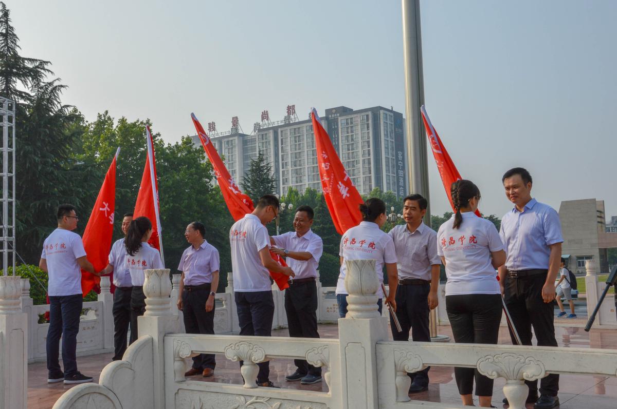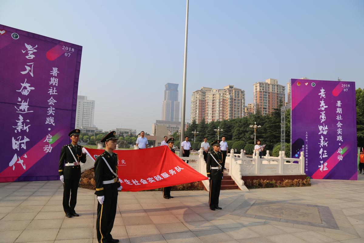 7月1日上午,在中国共产党成立97周年之际,“国旗下的讲话”暨2018年“学习奋进新时代·青春勇踏新征程”大学生暑期社会实践活动启动仪式在弘毅广场举行。校党委副书记孙海,我校省派驻艾庄回族乡袁庄村第一书记陈浩勇及2018暑期社会实践活动领导小组全体成员出席仪式,“西部计划”学生代表、100支实践团队的指导教师和团员代表近1000人参加了仪式。启动仪式由团委书记谢依楠主持。