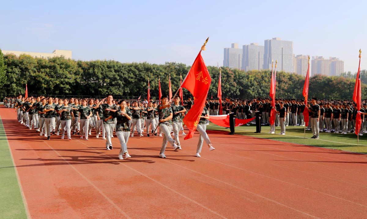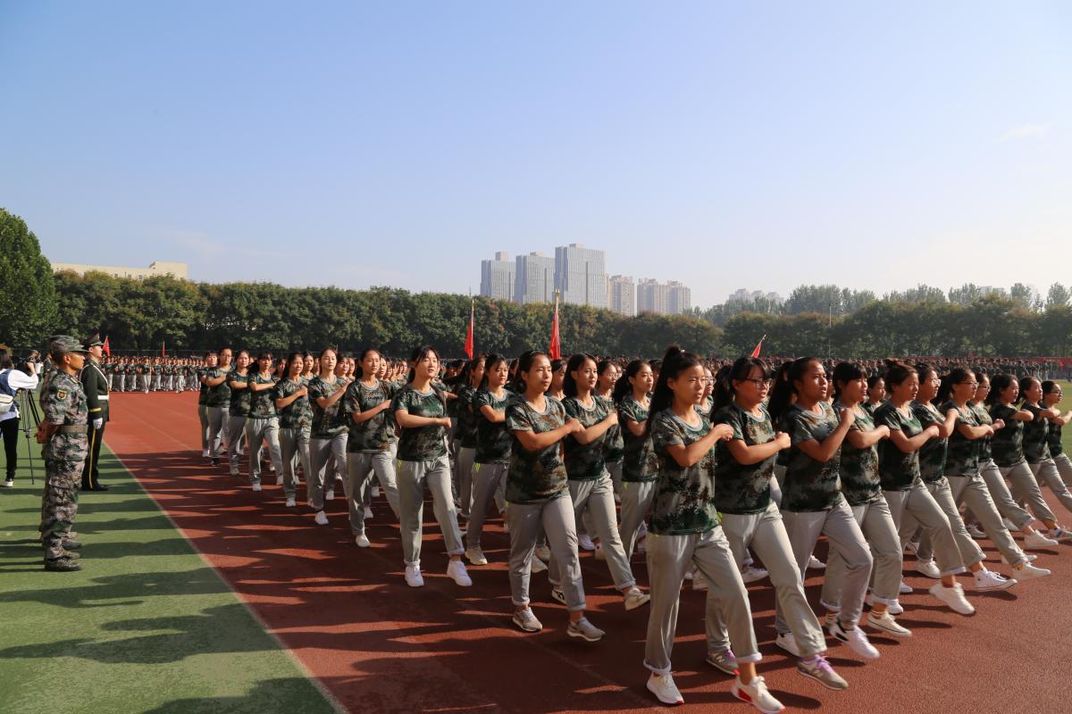 上午8时30分,伴随着雄壮激越的进行曲,入场分列式表演开始。2018级全体新生组成的55个连队,在许昌学院校旗和院部旗帜的引导下,精神抖擞地迈着正步,高喊口号,依次走过主席台接受检阅。