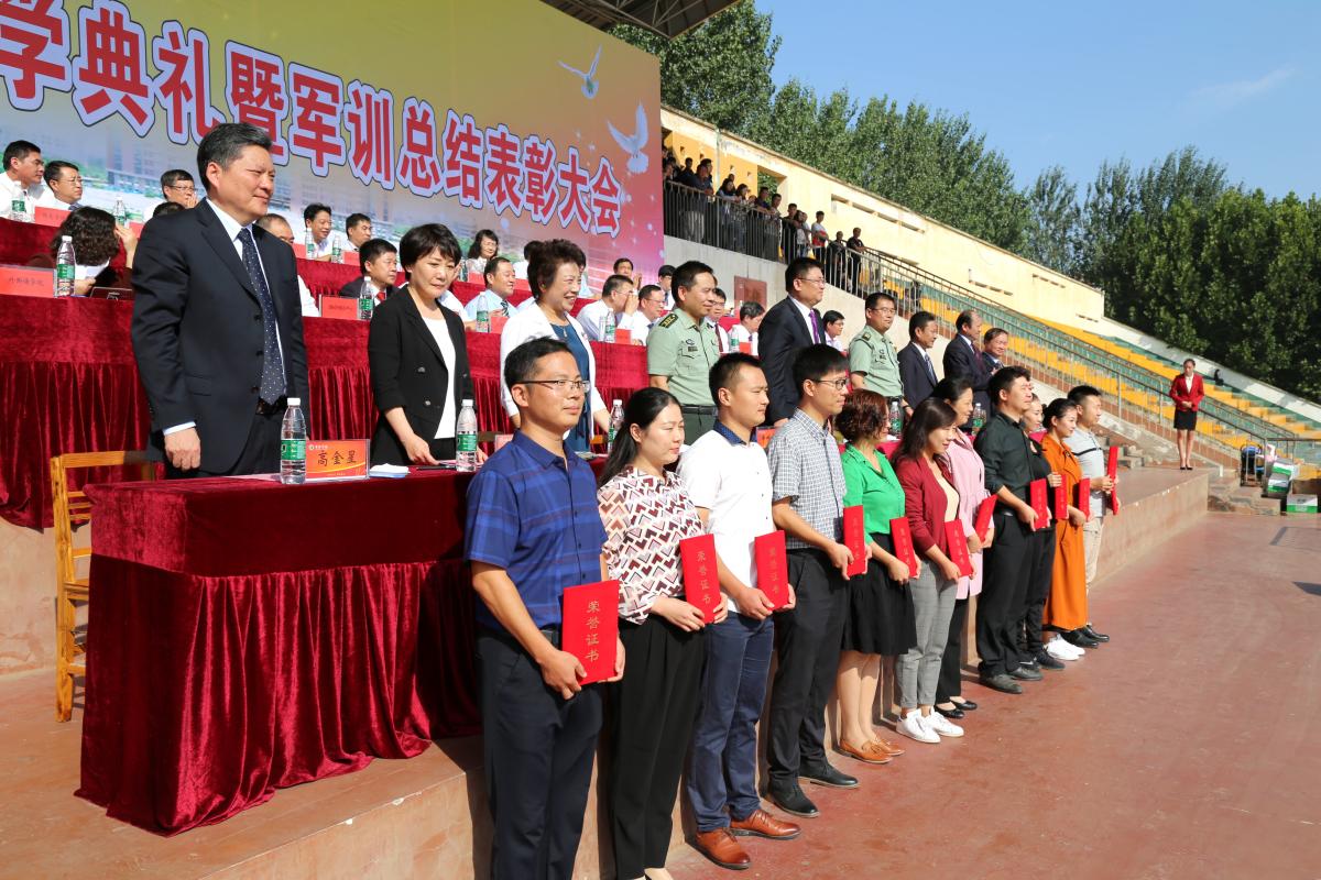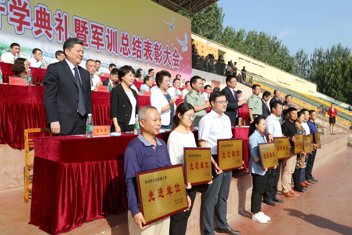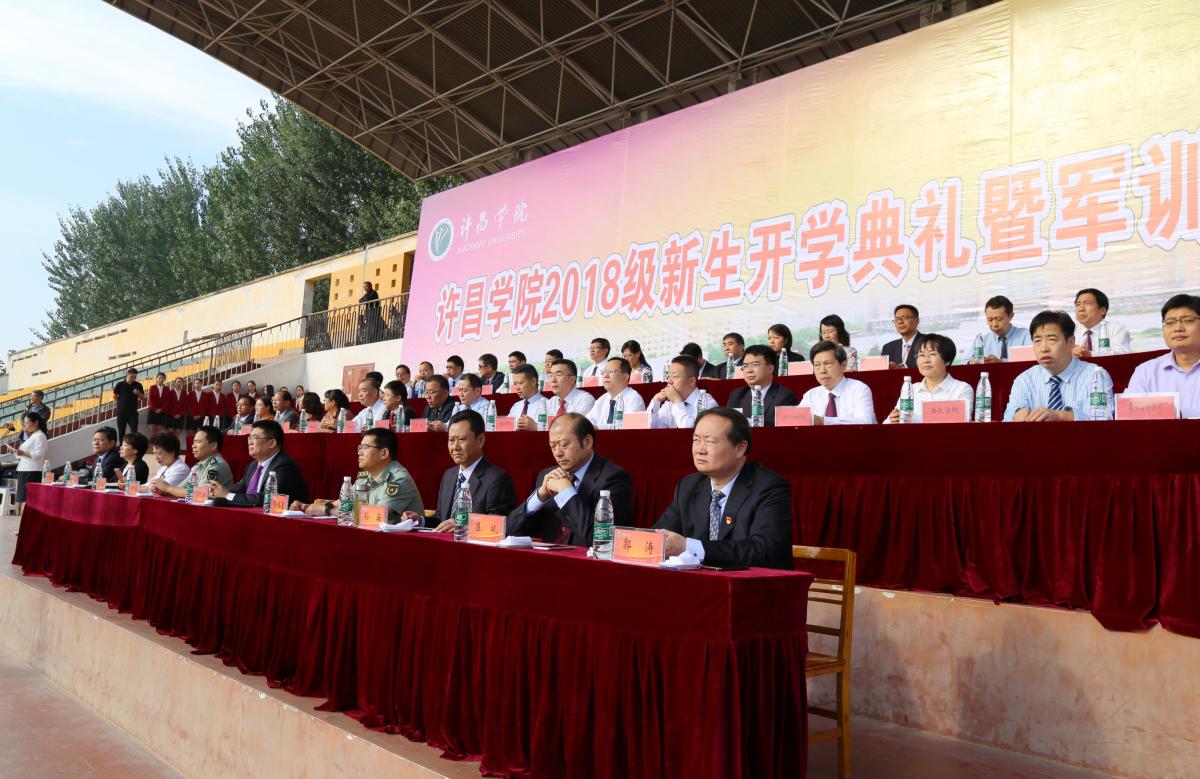9月21日上午,我校在学校羽飞田径场举行2018级新生开学典礼暨军训总结表彰大会。校党委书记闫纪建、校党委副书记孙海、纪委书记罗凤英、副院长崔斌、黄怡俐、郭涛,工会主席高金星出席大会。许昌军分区战备建设处处长陈福星、魏都区武装部政委牛听甫也出席活动并在主席台就坐。学校机关各部门和二级学院负责人、各团总支负责人、辅导员(班主任)和全体2018级新生共同参加会操活动和开学典礼。仪式由党政办公室主任潘春彩主持。