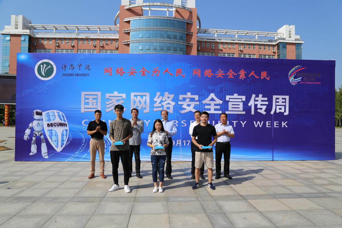 9月21日下午,我校在弘毅广场举行网络安全知识竞赛颁奖仪式暨2018年网络安全宣传周活动闭幕仪式。副院长崔斌出席仪式并讲话,中国人民银行许昌市支行,我校党委宣传部、学工部(处)、校团委、保卫部(处)、信息化管理中心、信息工程学院等相关部门负责人和师生代表200余人参加了颁奖仪式。仪式由信息化管理中心主任冯战申主持。