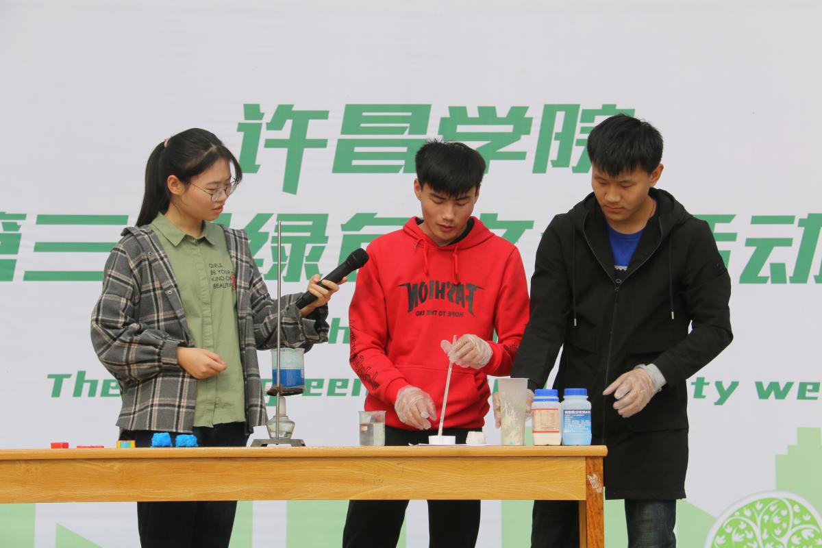 新材料与能源学院依托本院专业特长,向同学们展示了融合创新技术烧制的钧瓷花瓶和加装金刚石的耐磨齿轮,用新型技术传递绿色环保理念。来自化学化工学院的同学们更是将实验台搬到了活动现场,与在场师生共同参与到“叶脉化石”、“硫酸铜结晶玫瑰”等趣味实验项目中,带领大家感受绿色实验的魅力。