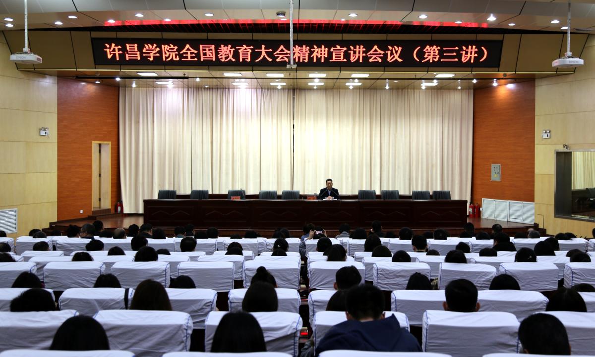 孙海副书记从我国当前的教育事业发展的现状、全国教育大会的重大意义、结合学校实际深入贯彻落实全国教育大会精神等三个方面向与会人员进行了宣讲。