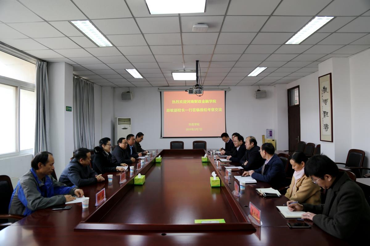 3月7日,河南财政金融学院副校长颜敏一行到我校参观考察,副院长崔斌会见了来访客人,教务处、信息化管理中心等相关单位负责同志参加了座谈交流。